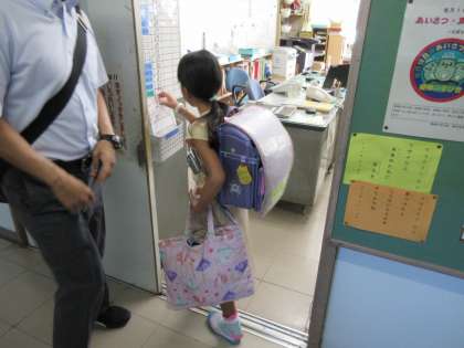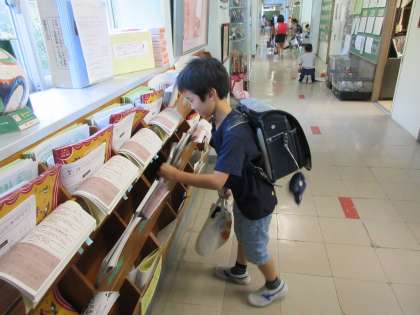 職員室前のお便りボックスの配布物を取りに来たり、職員室へ入って健康カードを持って行ったりする子どもの往来がひっきりなしです。自分の役割をしっかりと果たしていますね。