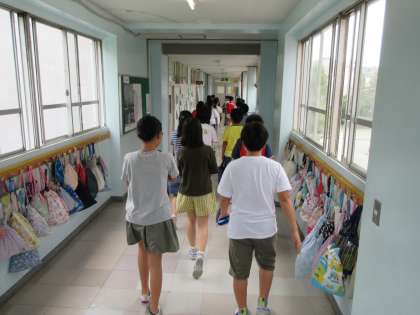 担任する学級で授業をしている際、廊下をザワザワと他学級・学年の集団が通過していくと、せっかくの集中が途切れたり、声が聞こえにくくなってしまったりという事態が起こります。これはむしろ先生方の方が、感じることの多いケースかもしれません。従って、教室移動はしゃべらず、右側を歩いてが大原則です。互いが快く生活する上で、欠かせない心遣いと言えるでしょう。