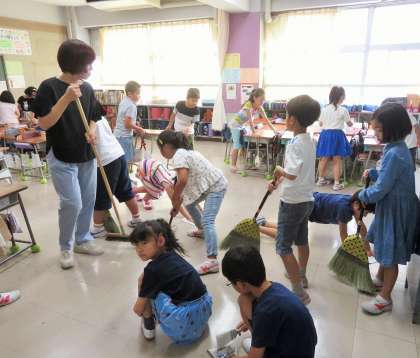 おしゃべりをしないと、お掃除はあっという間に終わります。低学年も、無駄なおしゃべりをしないで、真剣にお掃除をしていました。