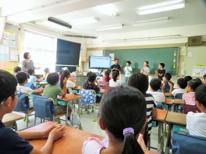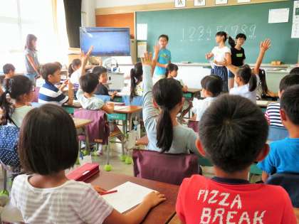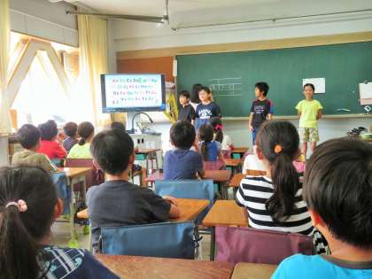 今日は、4〜6年生の企画代表委員の子どもたちが、朝のモジュール学習の時間に、2年生の教室に入って、英語の授業体験をしてくれました。2年生も映像を見ながら楽しそうにアルファベットを発音していました。