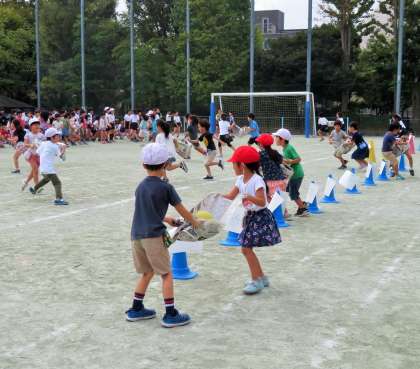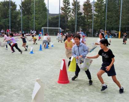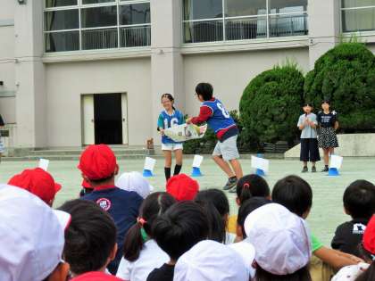 今日の児童集会は、集会委員会によるゲーム集会です。今日のゲームは「ボール運びリレー」で、新聞紙の上に乗せたボールを運ぶリレーゲームです。集会委員の子どもたちがゲームの説明をしてからスタートです!