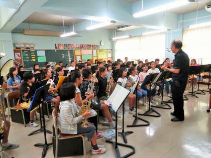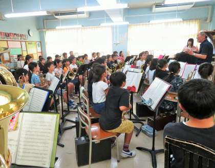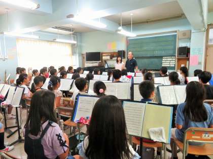 金管バンドの子どもたちが特別レッスンを受けました。これは、世田谷区管楽器研究会という組織が、特別講師の伊原先生をお招きして、その指導法を学ぶという研究の一環として行われたものです。