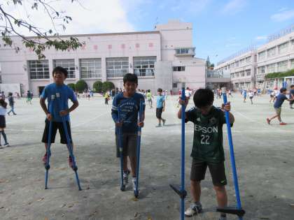 竹馬に興じていたのは5年生です。