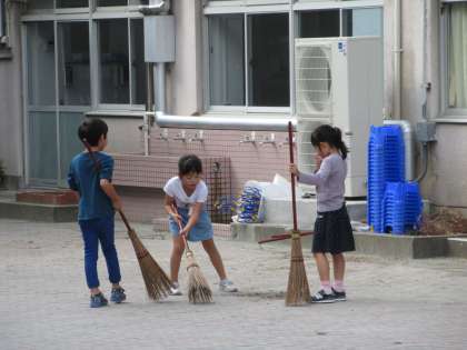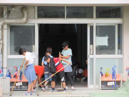 昇降口と犬走りが掃除場所となっているみんなを撮影しました。