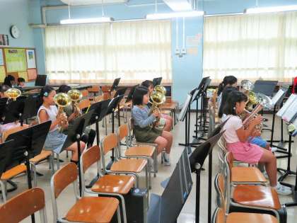 金管バンドの朝練習の様子です。現在は、世田谷区管楽器発表会(2月15日)に向けて練習をしています。