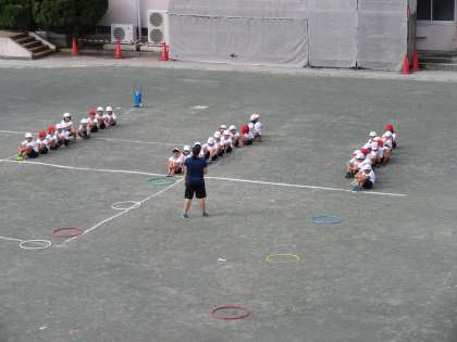 外体育が予定されていた1年生が活動を始めています。よかったね!
