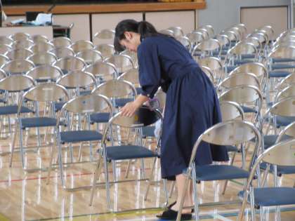 PTAの皆様に、午前中から会場設営等でお世話になっています。お客様をお迎えする準備、バッチリです!