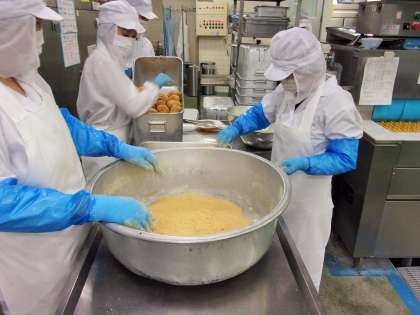 本校のあげパンは、油で30秒ほどくるくると回しながら揚げて作っています。