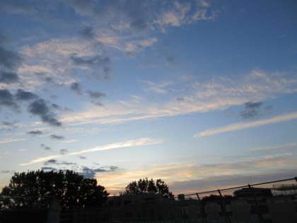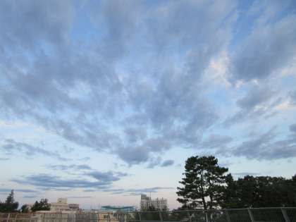 寒冷前線が通過後、乾いた空気に入れ替わり、強い北風に揺らされた木々がザワザワと音を立てている朝です。5時42分のサンライズ数分後に撮影した空の様子です。
