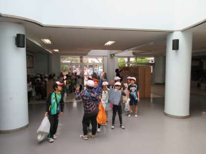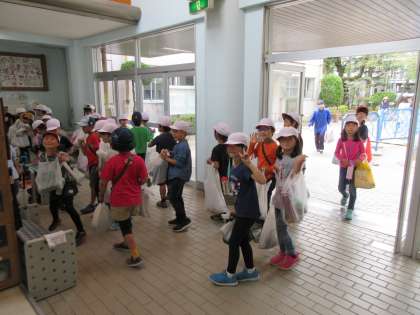 2年生が誇らしげに帰校しました。嬉しい収穫にご満悦な顔つきです。
