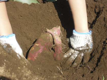 そして、いよいよお待ちかねのいもほりタイム!! 掘り当て、さつまいもを手にできた子どもたちは大喜びでした。