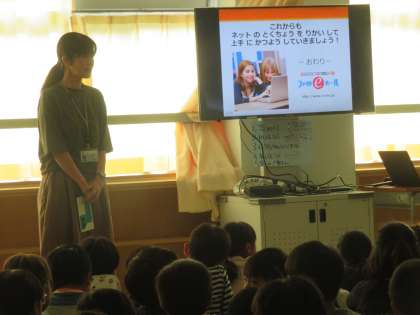 今日はセーフティ教室がありました。3・4年生は都民安全推進本部の方にお越しいただき、「ネット・ケータイを上手に使うためのルール」というテーマで子どもたちにわかりやすくお話しをいただきました。