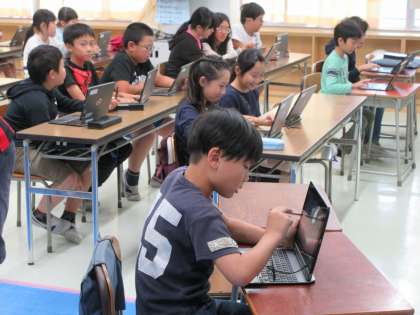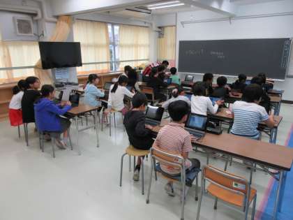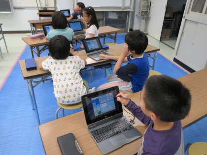 パソコンクラブの様子です。名称通り、タブレットを操作しながらの活動が進行中。