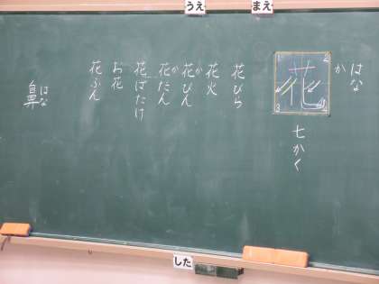 平仮名表記上はどちらも「はな」となりますが、咲いているのは「花」、顔にあるのは「鼻」です。それを漢字で使い分けるのは、1年生にはまだ難しいことかもしれません。しかし、新出漢字「花」の学習を通して、その使い分けについても学んでいる子どもたちでした。