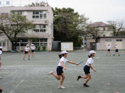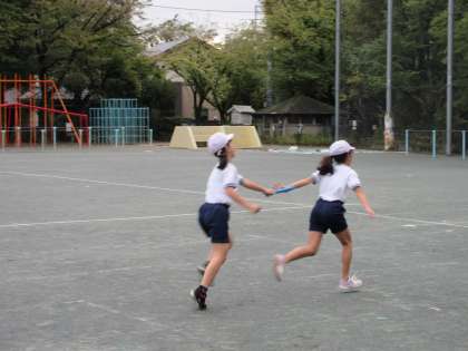 予報に反して雨があがり、連合運動会に向けての朝練習を予定通り校庭で実施している6年生です。