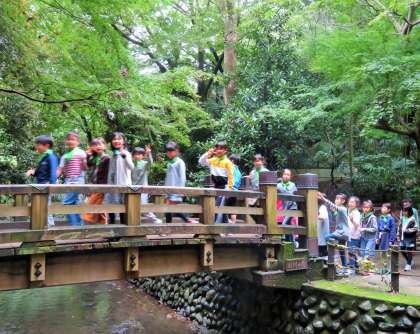 最後の見学地、等々力渓谷です。等々力渓谷は、都内23区内で唯一の渓谷ですので、ここが都内かと思うほど静寂で、川のせせらぎだけが聞こえ、自然に囲まれた散策路が続きました。まさに都会の秘境です。