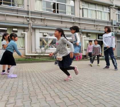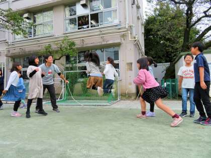 松丘小学校では、休み時間は校庭での「外遊び」を推奨しています。私は、「健康・体力づくり」の原点は「外遊び」と考えています。現在は、長縄跳びをしている子どもたちが多くいます。