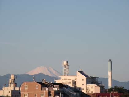 スカッと晴れ渡った空に、雪化粧した富士山が登場しました。この秋、初めての白富士です。