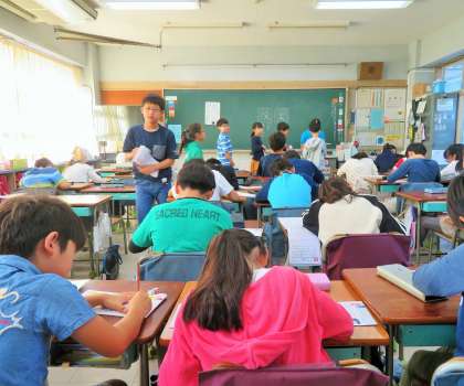 4年生は、国語の漢字ドリルに集中して取り組んでいました。