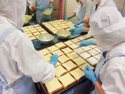 今日の給食室は、ガーリックトーストのいい香りがしていました。
