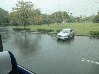 そう語っていらした先生がいました。私も初めてでした。潮風公園とは名ばかりで、今日は強風公園と化していました。無情の雨景色を見ながら、バスでのランチタイムとなりました。でも、空腹の子どもたちはそんなことはお構いなし! 「美味しい、美味しい」とペロリと平らげ、「この量では、まだ足りませ〜ん!」と悲鳴をあげている子が少なくありませんでした。