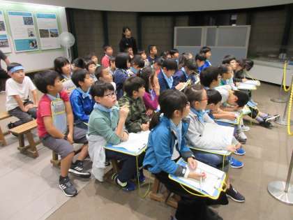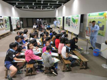 解説員の方のお話をマナーを守って聞いている子どもたちです。