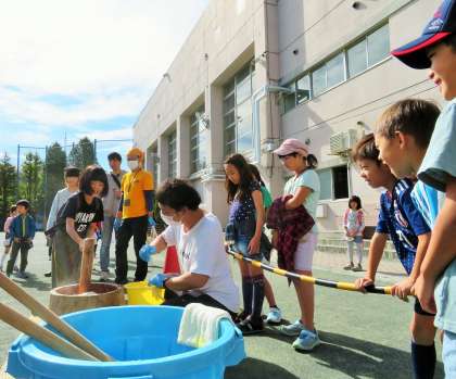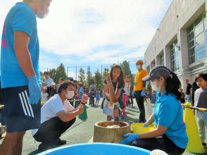 「おいしくな〜れ!」と、願いを込めてのもちつきです!