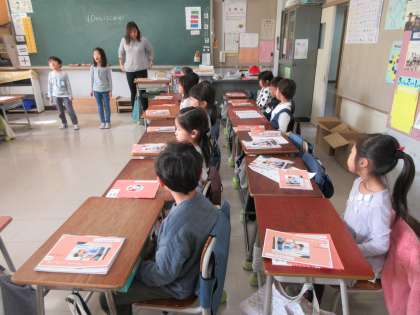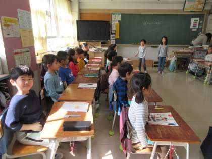 日直さんの号令で2校時のスタートです。他のみんなは、よい姿勢を整え、挨拶をして道徳科の学習へと入っていきました。日々、先生は声を掛け、励ましながら、子どもたちを育てています。