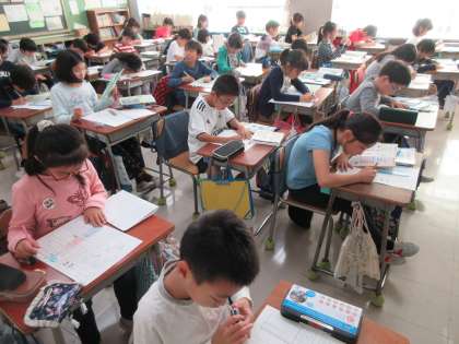4年生が早速、社会科見学の様子をまとめる新聞作りに取り組んでいます。たくさんしたためてきた見学メモも、有効に活用されていましたよ。どんな仕上がりになるか楽しみです!