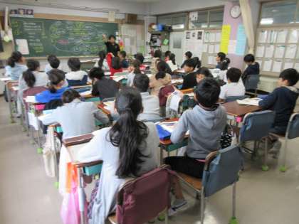 あさってに連合運動会が延期となってしまった6年生ながら、教室をのぞくと、いつもと活気は変わらず。社会科や国語科授業の真っ只中でした。