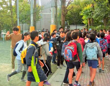 まるで花のアーチを描いているかのような5年生たちに見送られ、6年生が門を出て行きました。いってらっしゃい、健闘を祈る!