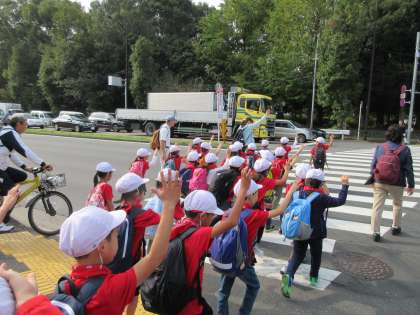 道中、お友達と仲良く手をつないで歩き、会話が弾みます。