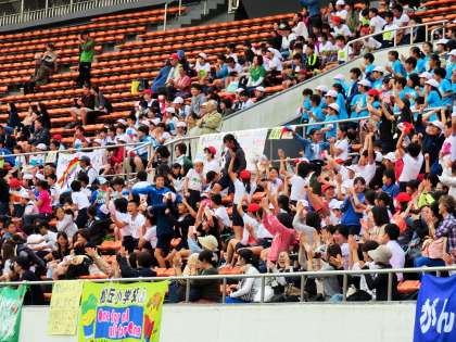スタンドからは熱い応援が送られていました。子どもたちがスローガンに掲げたように、他校を称えている場面もありました。それぞれの競技が終わり、スタンドに選手が戻ってくると、そこには温かい励ましやねぎらいの言葉がありました。