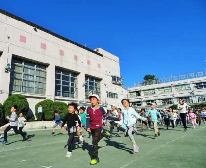 軽快な曲に合わせて、子どもたちは元気いっぱいに走っています。