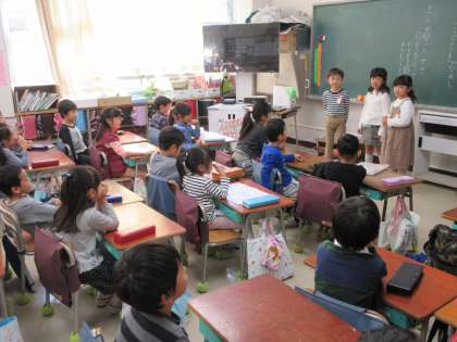 色々な夢をふくらませ、のびのびとした発表に、教室がわいています。それを聞いたお友達も楽しそう。質問も活発になされていました。