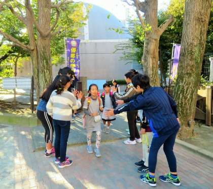 11/8 優郷の学び舎あいさつ運動〜ハイタッチでお迎え〜2