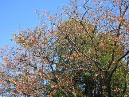 校庭を囲む木々が、赤や黄色に色づき始めています。早くも散り敷く落ち葉も見られます。歩みが遅いと言われている今年の秋ですが、確実に晩秋へと向かっていますね。