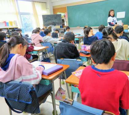 3・4年生は、国語の漢字ドリルに集中して取り組んでいました。