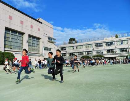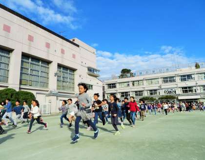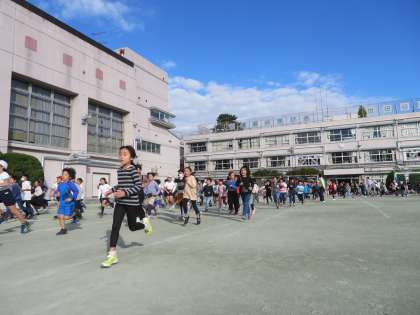 2年生も音楽に合わせてリズムよく走っています。