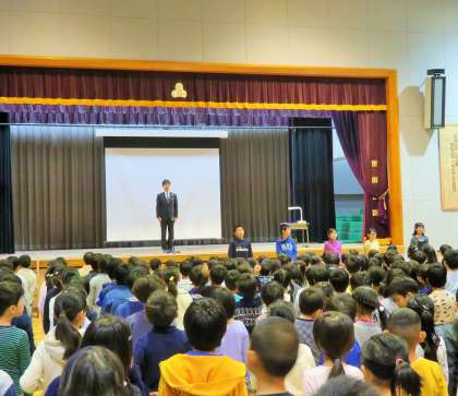 11/18 全校朝会〜世田谷区小学生海外派遣報告会〜1