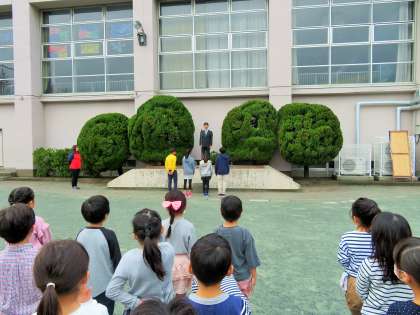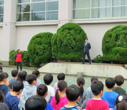 今日の全校朝会では、9月下旬から毎週金曜日に取り組んでいる「自問清掃」について話をしました。