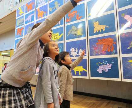 見学をしていた多くの子どもたちが、作品を見て「すごーい。すごーい!」と言葉にしていました。