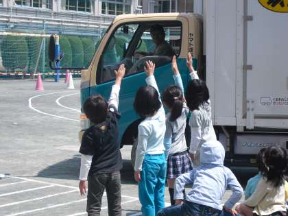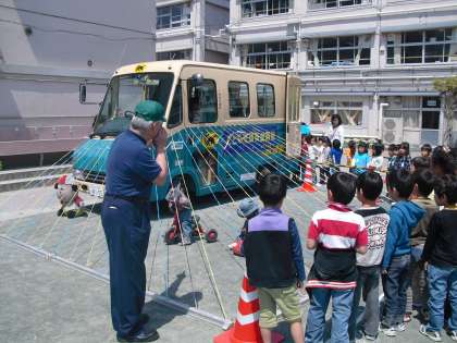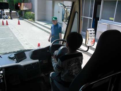 横断歩道の渡り方を勉強したり、ガリバートレイナーに乗り、
