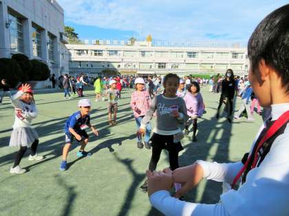 昼休みは、今年度3回目の「たてわり集会」です。松丘小学校の特色ある活動の一つとして、異学年の子どもたちと交流し、思いやりの気持ちをさらに向上させるための活動です。一つの班に1年生から6年生までが入って縦割りの集団で遊びます。