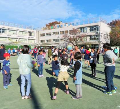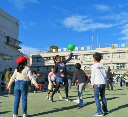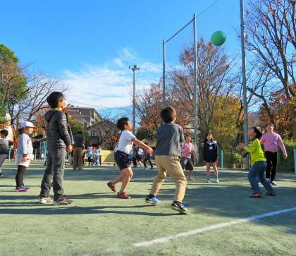 もちろんリーダーは6年生です。風船やボールを使って遊んでいる班がありました。