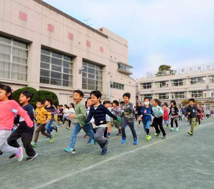 雨上がりで心配をしていましたが、松丘小学校の校庭は水はけがよく、始業前の朝遊び・1・3・5年生の朝マラソンに取り組むことができました。神経機能がぐんぐん発達する幼小期は、運動機能のベースを育むのにとっても大切な時期です。