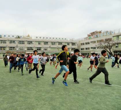 軽快な音楽に合わせてリズムよく走っています。