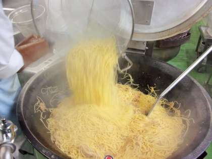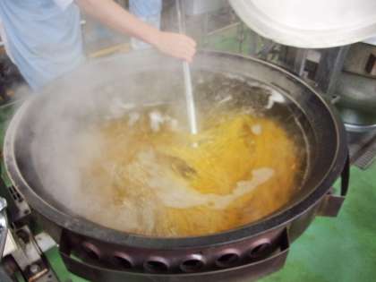 スパゲッティも、3回に分けて茹でて作ります。