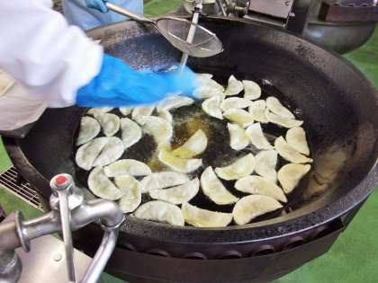 ジャンボぎょうざは、直径15センチのぎょうざの皮に包んで作りました。