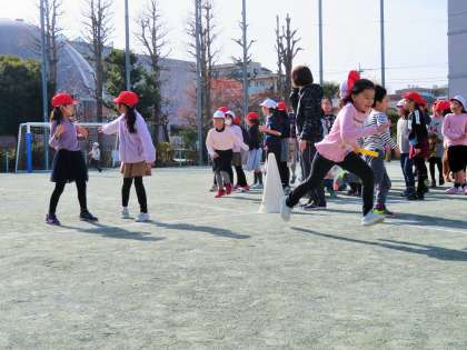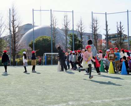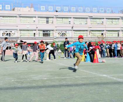 青空の校庭で体を思いっきり動かしていました。応援が清々しかったです。